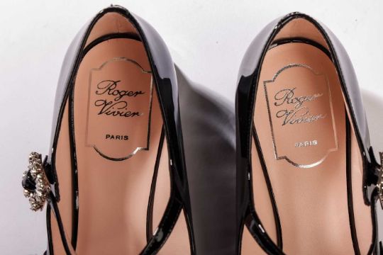 Roger Vivier - a pair of Tres Vivier Strass babies 25 flats in black patent. (size 39.5)
