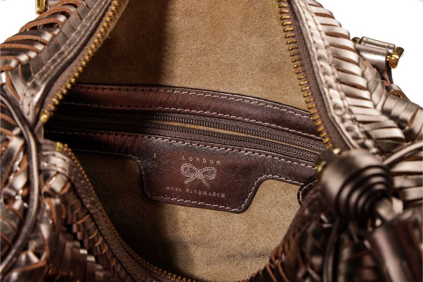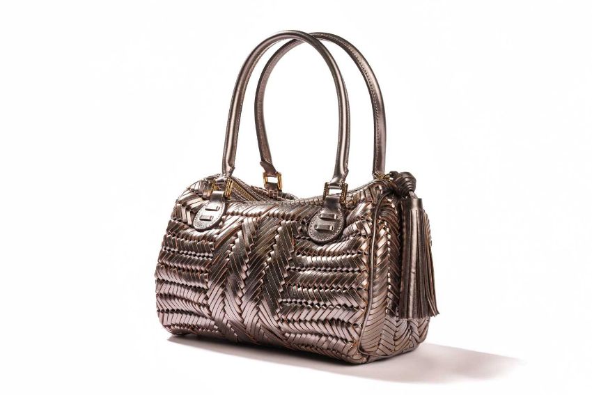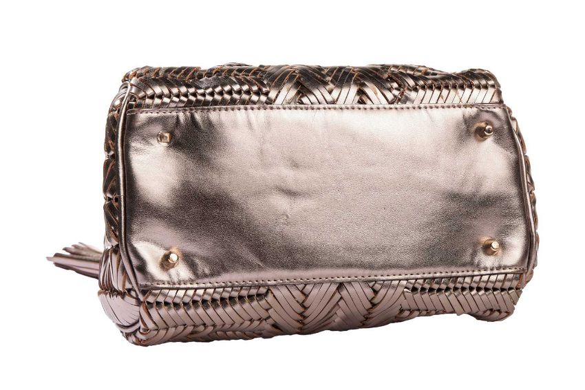 Anya Hindmarch - a mini boston bag in woven metallic silver leather.