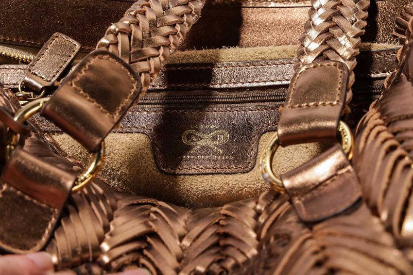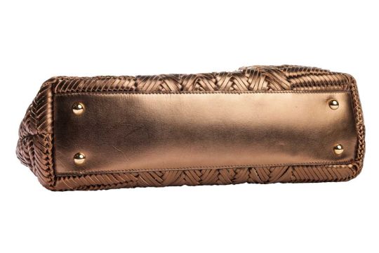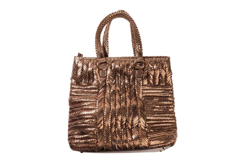 Anya Hindmarch - shopper in woven metallic bronze leather.