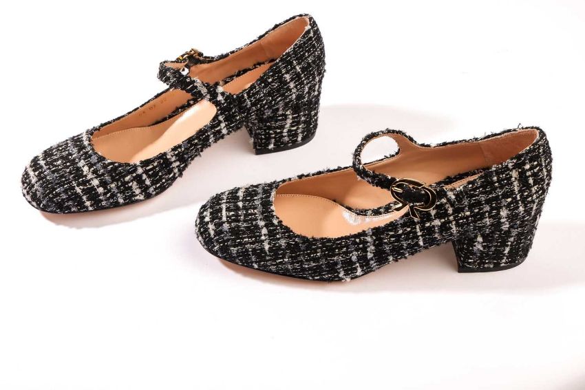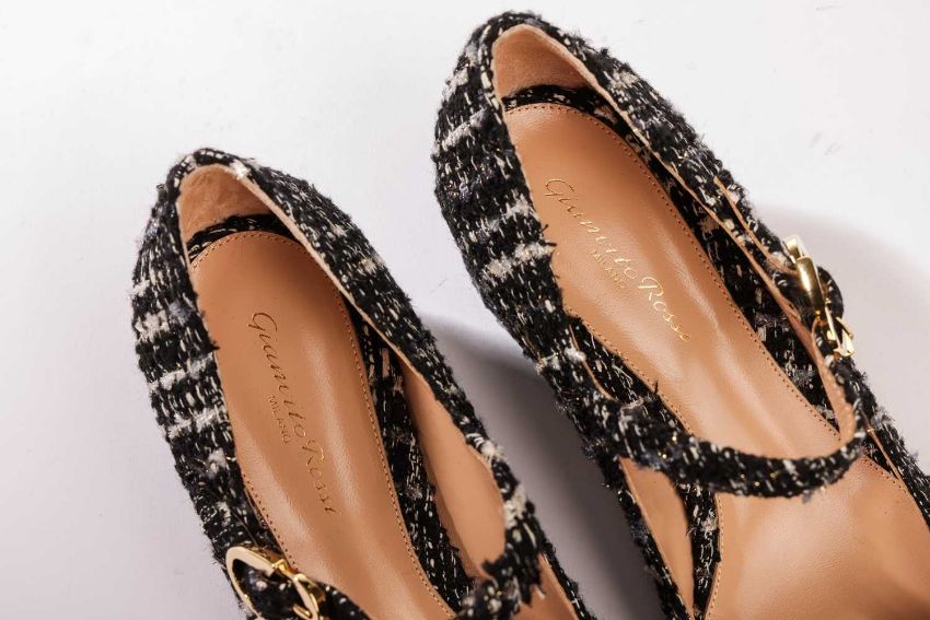 Gianvito Rossi - a pair of Mary Ribbon 45 bouclé Mary Jane pumps in black tweed (size 39.5)