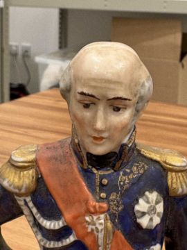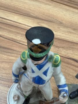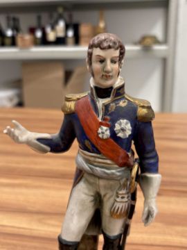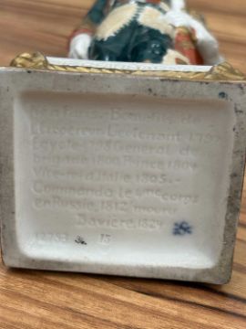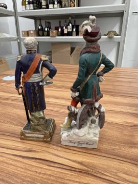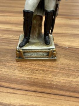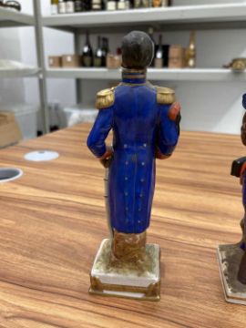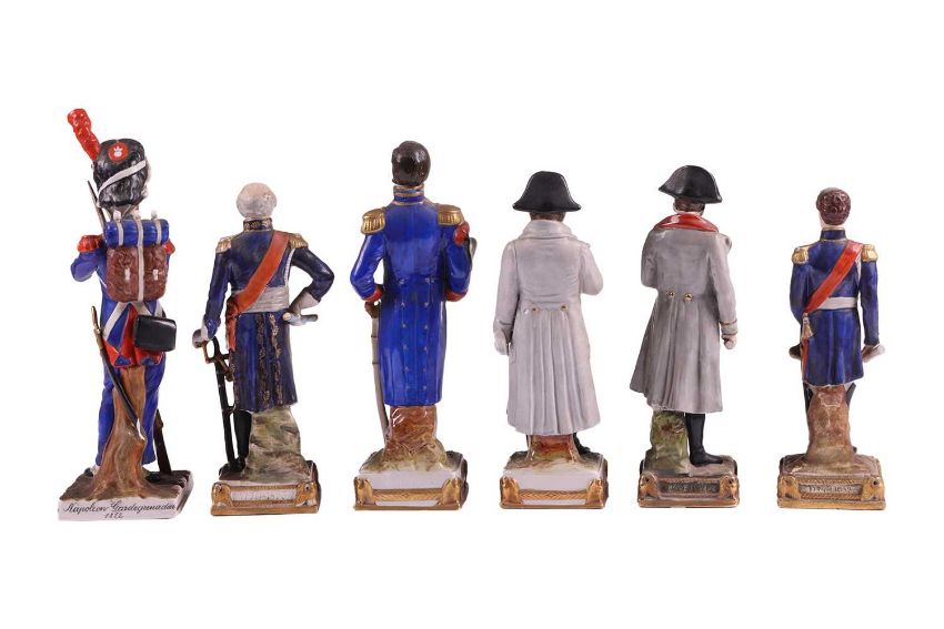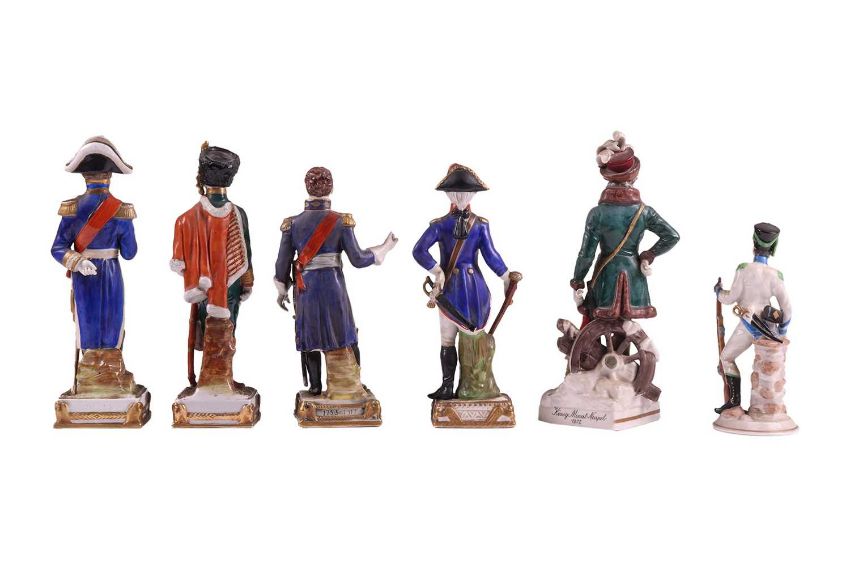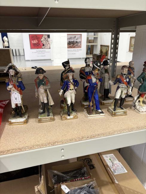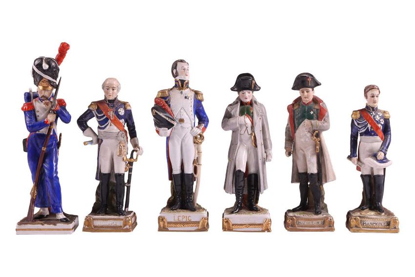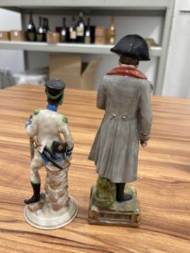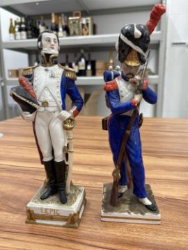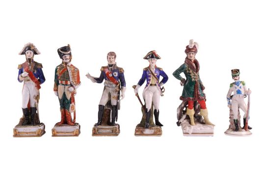 A collection of twelve Napoleonic porcelain and ceramic military figures, Meissen, Sitzendorf, Rosenthal and others, to inlcude Napoleon, Marmont, Lepic, De Beauharnais, Davoust, Massena, Ney and others, the tallest 26 cm.