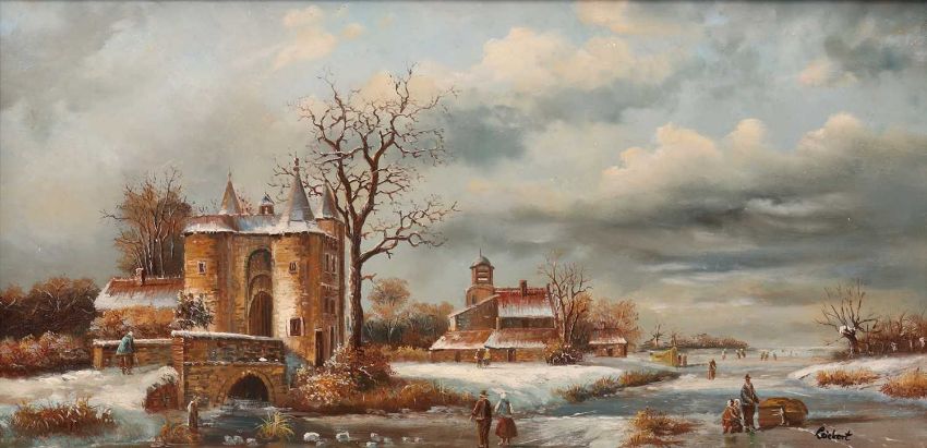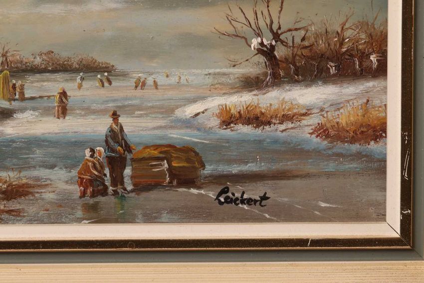 Manner of Charles Leickert (Late 20th century), Winter landscape, bears signature (lower right), oil on panel, 20 x 40 cm, framed 36 x 55.5 cm