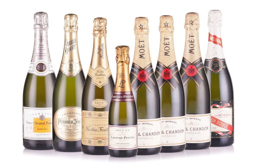 A collection of assorted Champagne, comprising 3 x Moet & Chandon Brut Imperial, a Perrier Jouet Grand Brut, a Cordon Rouge Brut, a Nicolas Feuillatte Brut, a Veuve Clicquot Ponsardin and a half bottle of Laurent Perrier Brut LP.