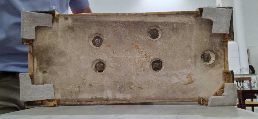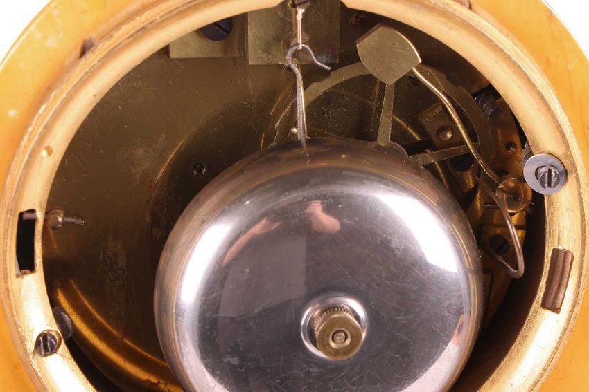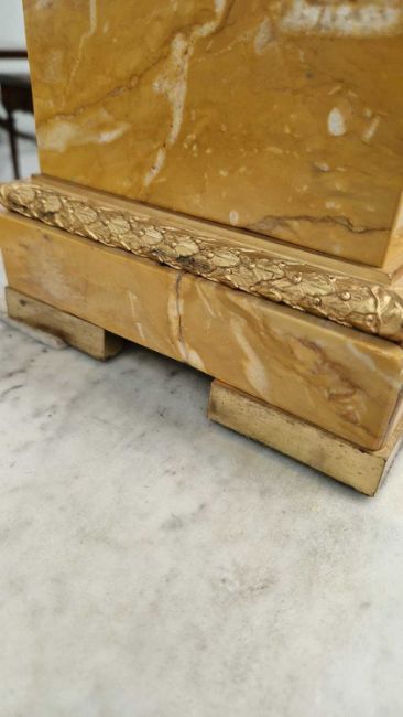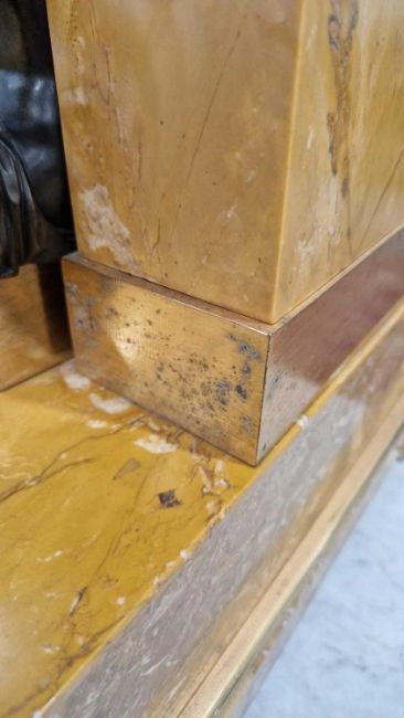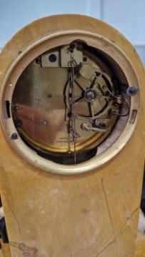 Some wear to the dial, some tarnishing in places and signs of previous cracks to the marble - see additional images. Includes a pendulum but no key. Movement has not been tested.