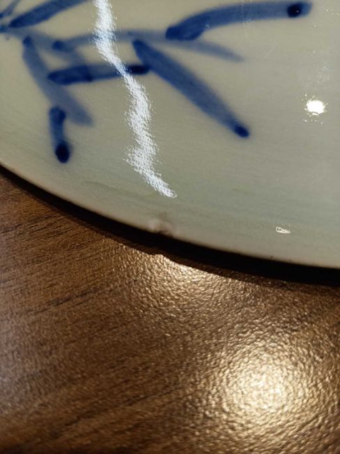 The primary item has shallow chips to the rim.