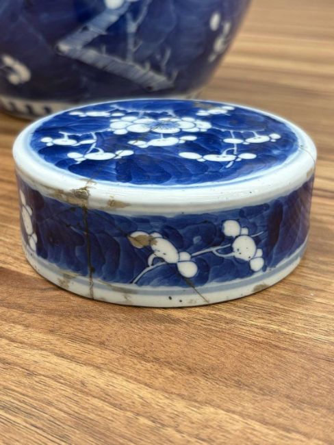 Extensive damage and repair to the ginger jar cover. Small areas of loss and repair to the other items, as shown.