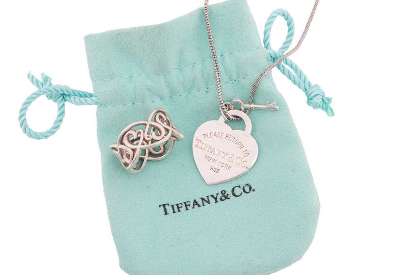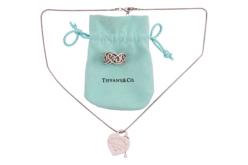 Tiffany & Co. - a Paloma Picasso "Loving Hearts" ring, signed and stamped "925", size M; together with a "Return to Tiffany" pendant on chain, featuring an engraved heart-shaped pendant, signed and stamped "925" with key charm, suspended from a snake chain with lobster clasp, measuring 45cm, with an extender chain of 5.5cm; total weight 14.4g. With associated pouch.