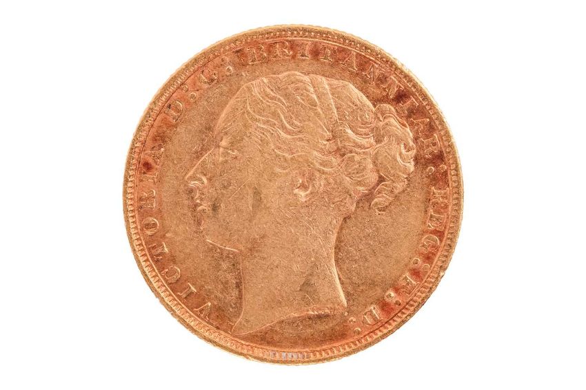 A Queen Victoria 1884 full sovereign, Young Head to the left, 7.9 grams.