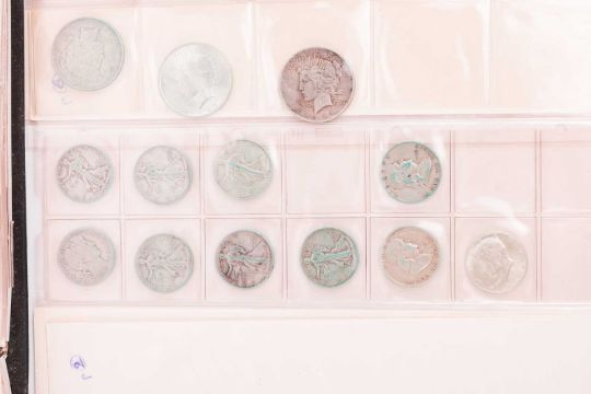 A large quantity of silver coins, mostly United States Dollars, including 1922/24 "Peace Dollars" and others, Greek proof 1981 drachma, South African shillings and other cupro-nickel world coins.