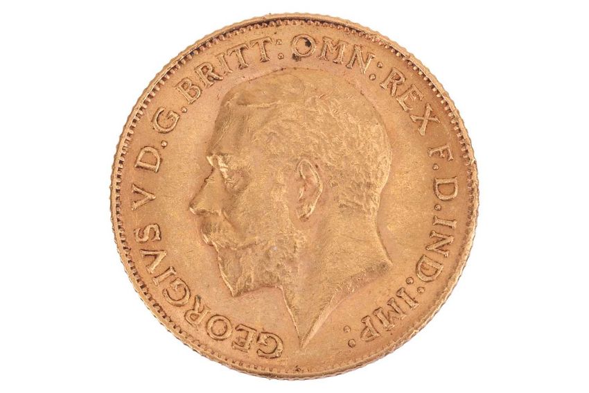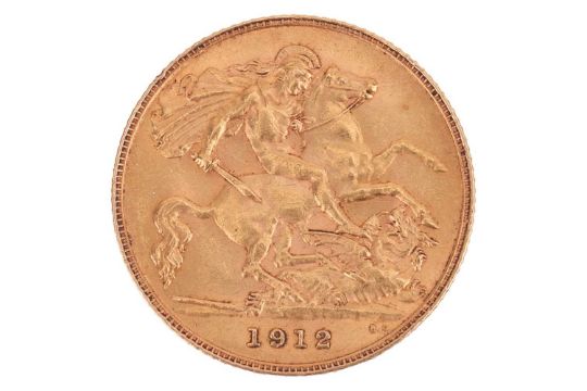 A 1912 George V half sovereign, obverse bare head to the left.