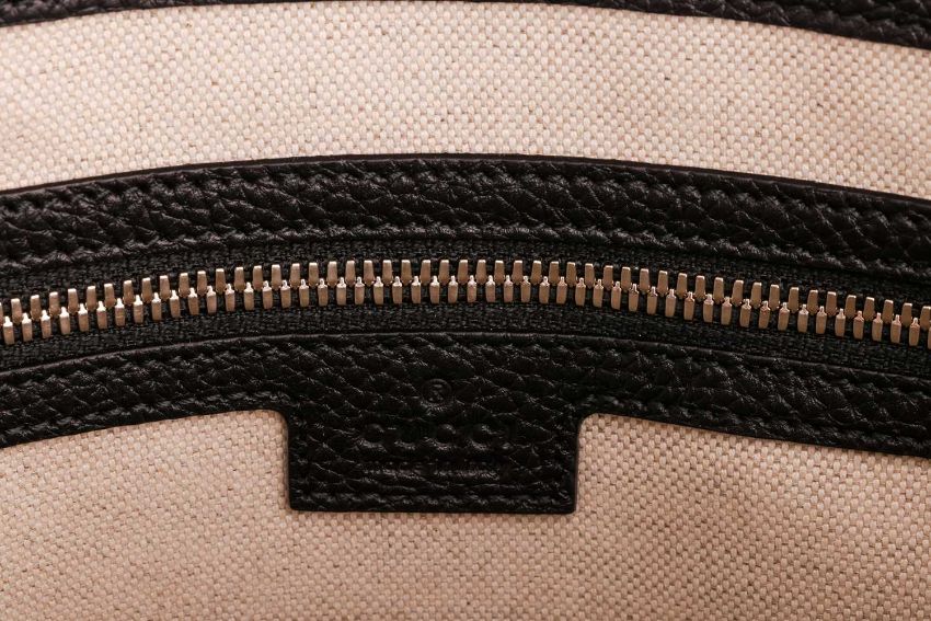 Gucci - a GG Jumbo medium crossbody bag, in black leather jumbo GG patterns, cotton linen lining, zip closure, with a detachable shoulder strap with 57cm drop. W31.0 x H24.5 x D5.0 cm.