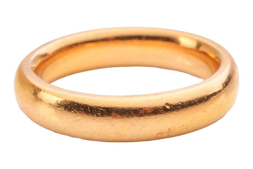 A 22ct gold band ring, of court profile, measuring 4.1mm wide, size K ½, 7.9 grams