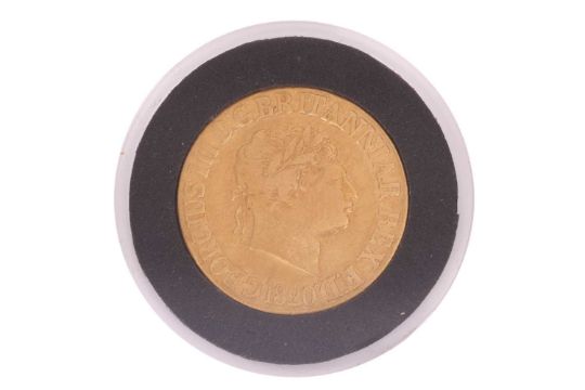 A sealed George III gold sovereign, minted 1820. in a presentation case and accompanied by certification.