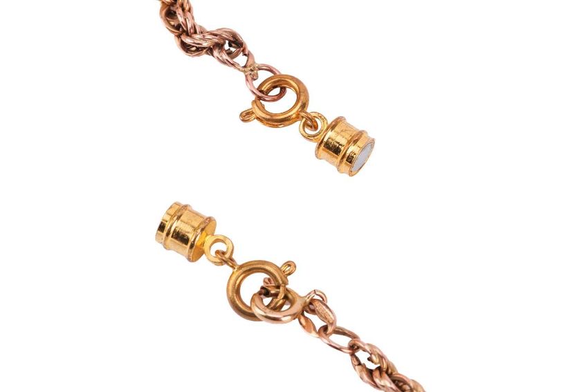 A twisted rope link chain in 9ct yellow gold, British hallmarks, fastens with a base metal magnetic clasp, overall length 50.5 cm, 6.8 grams weighable.