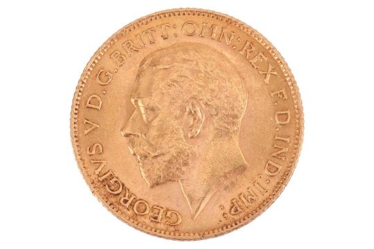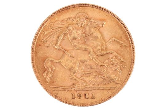A 1911 George V half sovereign, obverse bare head to the left.