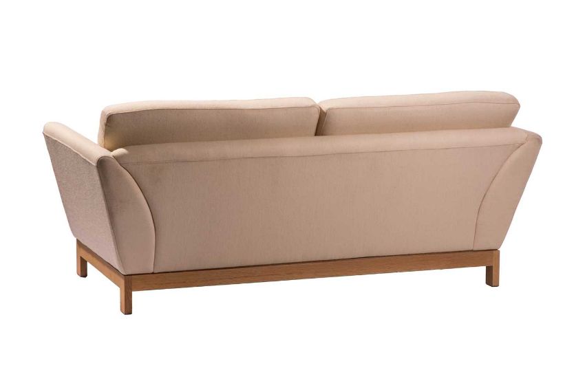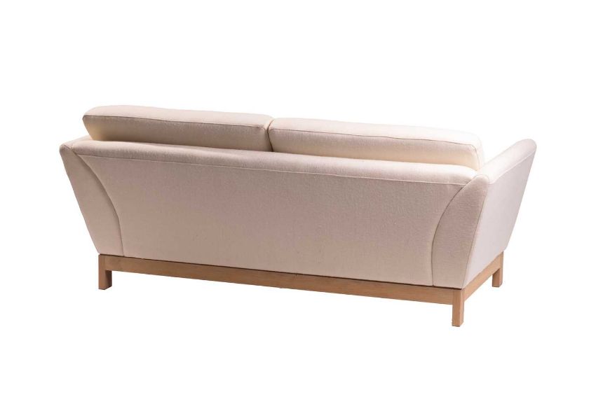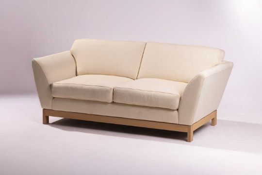 A pair of 'Arran Sofas', designed by Terence Conran and made by Benchmark, cream weave upholstery, 81 cm high x 184 cm x 93 cm, the seat 46 cm high x 58 cm deep.
