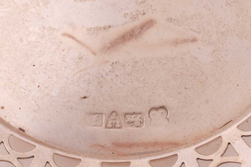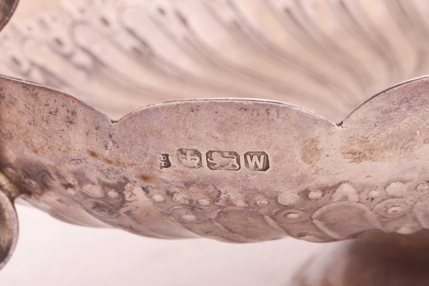 A collection of four associated silver bowls; to include a silver bowl by Stokes and Ireland Ltd., Chester 1901, highly decorated with repoussework depicting a bucolic scene, supported on paw feet; a twin-handled pedestal dish with pierced border on paw feet; a pierced fruit bowl with husk handles; and an oval two-handled stemmed bowl; total weight of items 1415.6 grams (45.51ozt). (4)