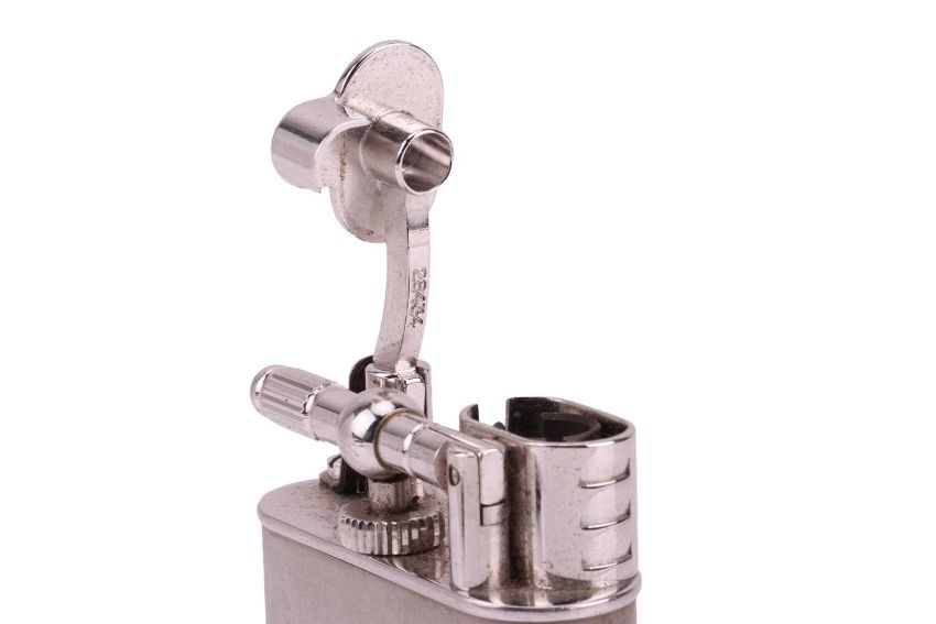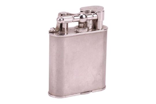 Dunhill Unique 'Sports' lighter, silver-plated on brass, signed 'Alfred Dunhill', numbered, no box, 6.0 cm tall.