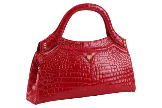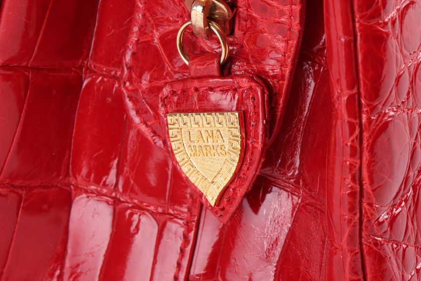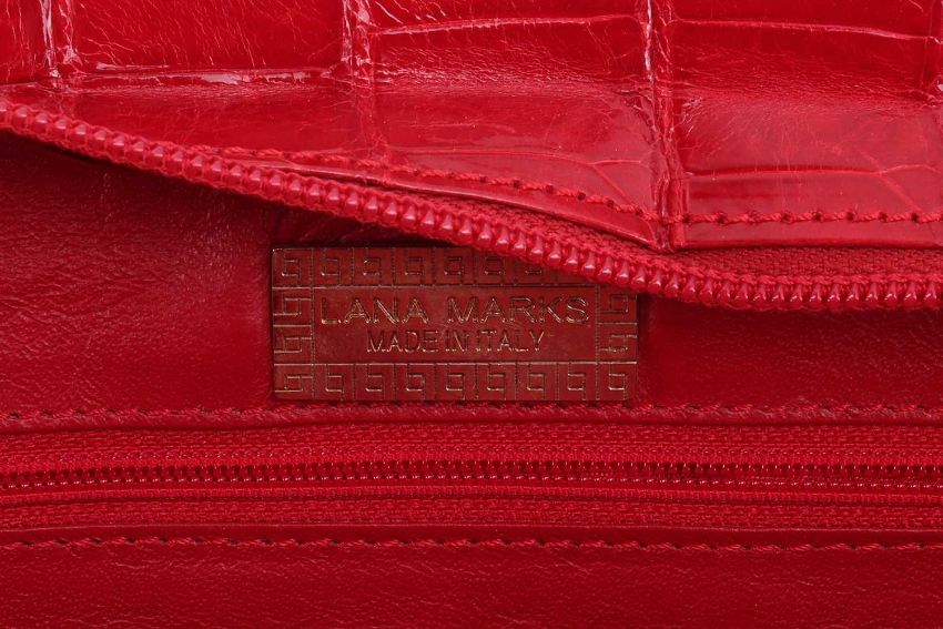 A Lana Marks handbag in red crocodile leather, of tapered rectangular form, with double top handles, zipper opening, a fabric lining and gold-tone hardware. In the original dustbag. W41 x H35 (with handles) x D11 cm.