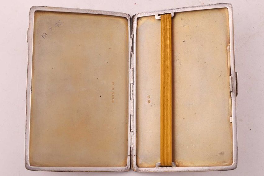 A cased six-piece silver cruet set, Birmingham 1933 by Adie Brothers, together with a cigarette case, a pair of vases and a bon bon dish. Gross weight 699 grams 22 ozt.