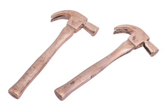 A pair of Asprey & Co cast silver miniature novelty claw hammers, London 1987 by Asprey & Co, each in leather presentation cases, 5.2 ozt, 161.9 grams, 10 cm long, the hammers.