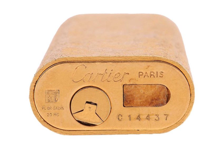 Cartier - a Must De Cartier gold-plated Briquet lighter, with chiselled texture design, signed and numbered, cased. 7.1 x 2.5 cm.