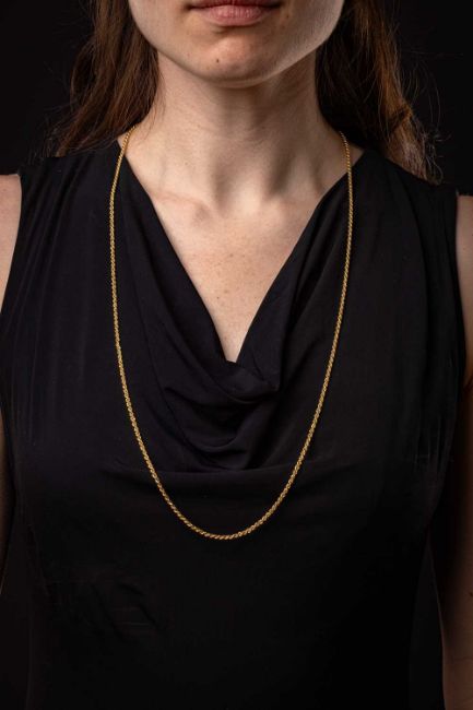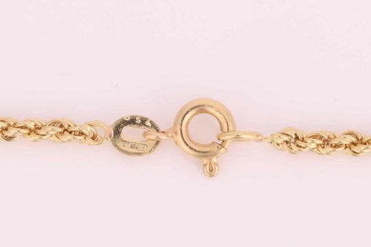 A long twisted rope necklace, completed with a spring-ring clasp, yellow metal stamped with Italian registration mark and '750', overall length 81.0cm, 20.62 grams.