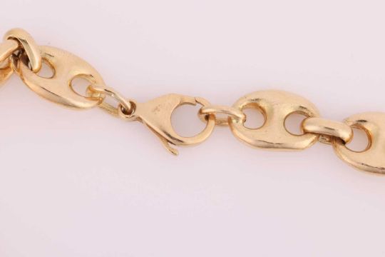 An anchor link bracelet, fastened with lobster clasp, marked as '750', link width 8.6 mm, overall measuring 22.0 cm in length, total weight of item 34.71 grams.