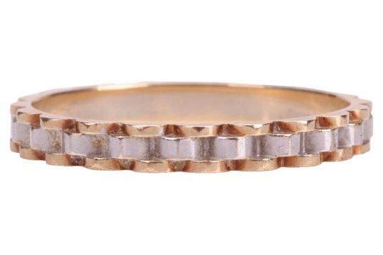 A bi-coloured 'Jubilee'-style ring, stamped '585' and testing as 14 carat gold. Size N, 1.8 grams.