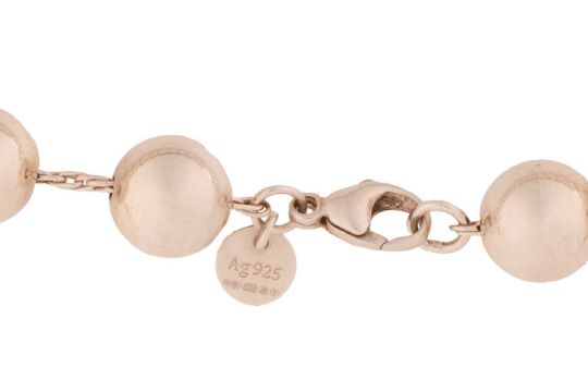 Tiffany & Co. - a 'City HardWear' silver beaded bracelet, signed and hallmarked, overall length 21.0 cm; together with a silver double hook eye bangle, London import marks, inner diameter 6.3 cm; total weight of items 34.5 grams. (2)