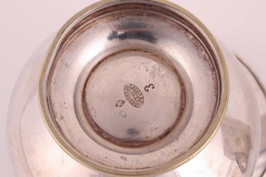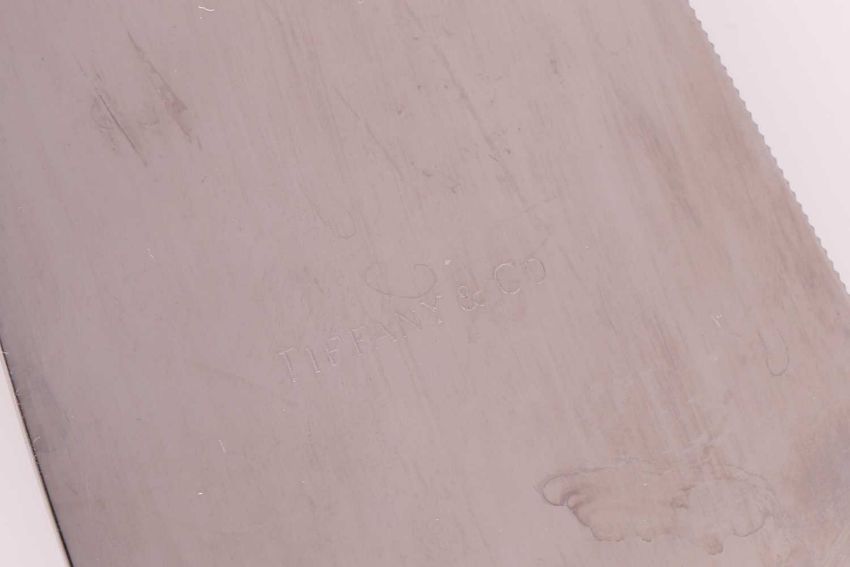 A Tiffany & Co. silver handled cake slice with monogrammed Art Deco handle, a continental white metal cream jug and a French silver two handled sucrier. 10.08 ozt/ 313.7 grams combined weight of weighable silver