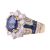 An unheated Burmese sapphire and diamond dress ring, centred with a cushion-cut sapphire of vivid blue colour, approximately 9.6 x 8.0 x 5.6 mm, claw-set within a diamond frame, between shoulders further adorned with diamond accents and 'T' motifs channel-set with calibre-cut sapphires, estimated total diamond weight 2.35ct, the bi-coloured metal stamped '18K 750', ring head 1.8 x 1.5 cm, size N, 8.8 grams.