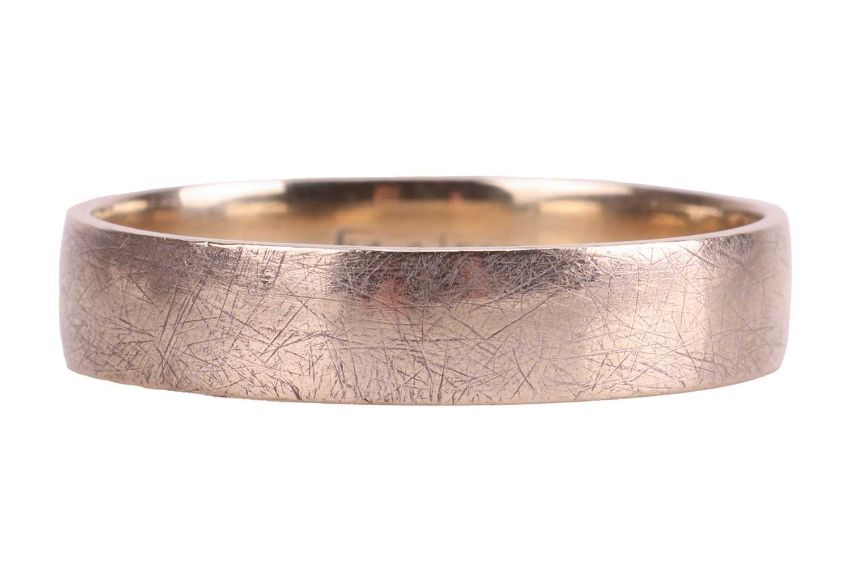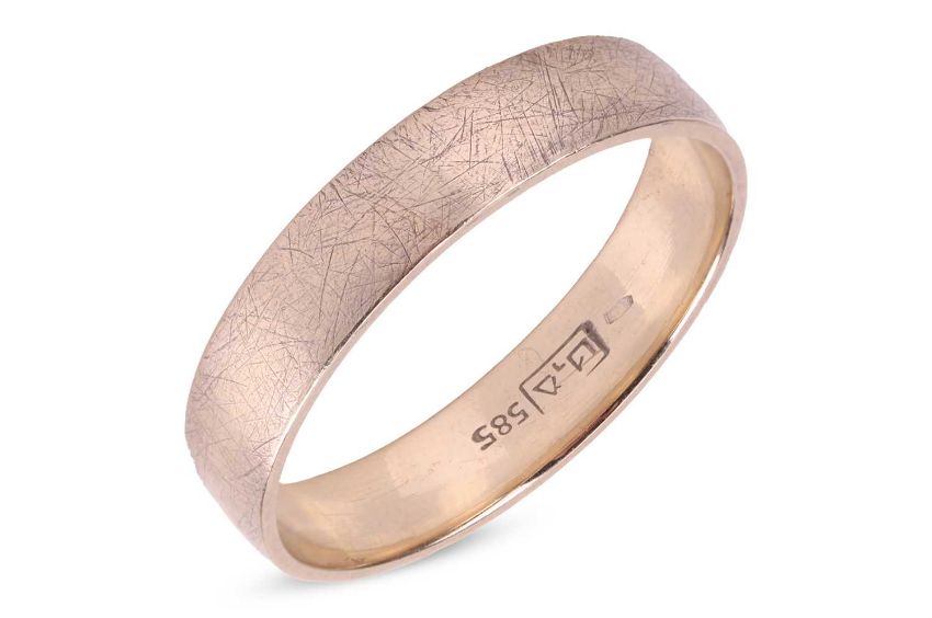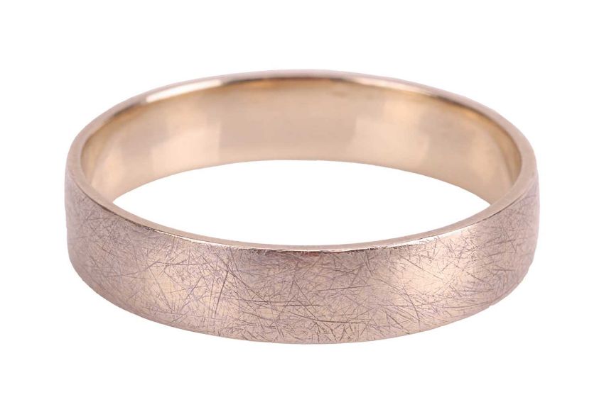 A wedding band, with a plain polished band in white metal, bearing Israeli hallmark for 14ct, size Y½, 4.5 grams.