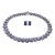 A boxed lapis lazuli necklace and earrings suite, set with graduated polished lapis lazuli panels in hinged white metal mounts, completed by a box clasp; with a matching pair of stud earrings; together with a pair of ruby cabochon and rose-cut diamond drop earrings, with post and butterfly fittings, surface testing as silver and 18ct, 4.0 cm drop. (3)