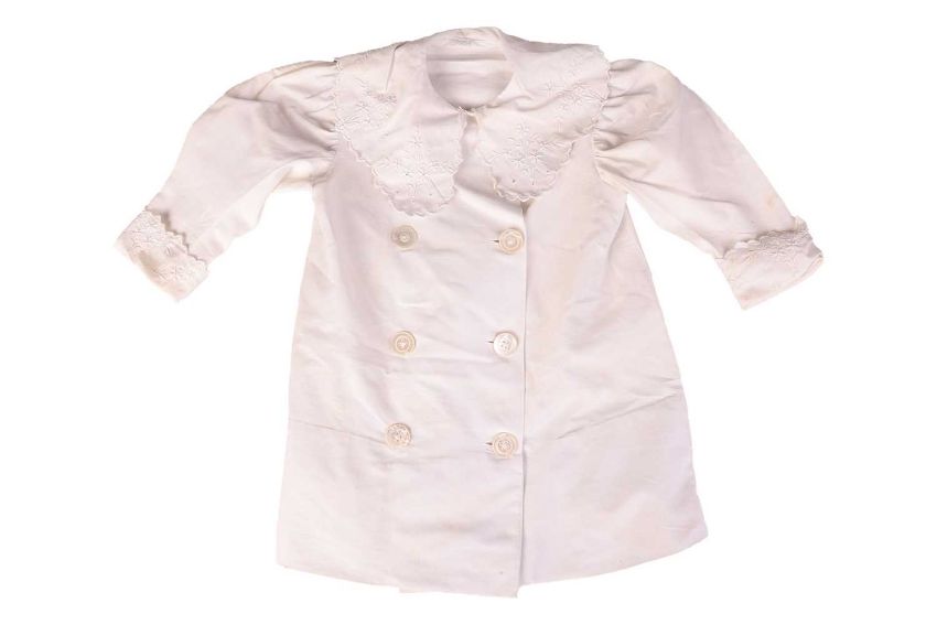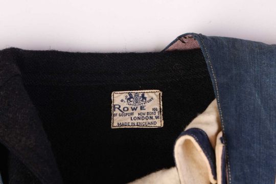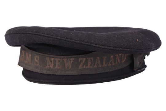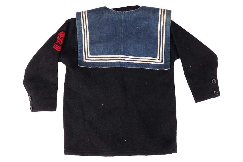 An early 20th century child's sailor's uniform, comprising an 'HMS New Zealand' hat, undershirt, trousers, tunic and scarf, the tunic circa 45 cm from collar to hem.