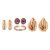 A group of jewellery items; The first a pair of amethyst ear studs, each featuring an oval amethyst in a collet setting with twisted wire detail, in yellow metal surface testing as 9ct, 2.0 grams; The second a pair of tubular earrings, featuring five tubes of yellow metal, two with engine turned texture, to post fittings stamped ‘14K’, 4.3 grams; The third a pair of diamond-set half hoop earrings, each featuring a channel of seven graduated round brilliant-cut diamonds, to post fittings (no butterfly backs) marked ‘750’, 4.7 grams; the fourth a split band ring in 9ct yellow gold, 1.9 grams. (4).