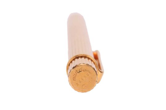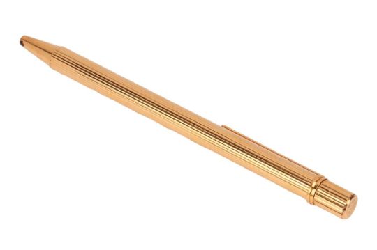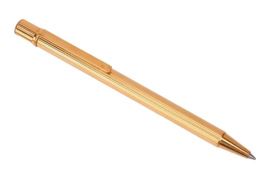 Cartier - a Must de Cartier gilt ballpoint pen of reeded design, clip with double-C logo, signed and numbered.