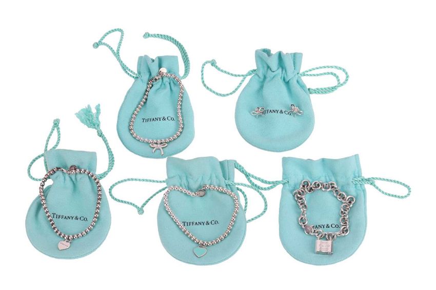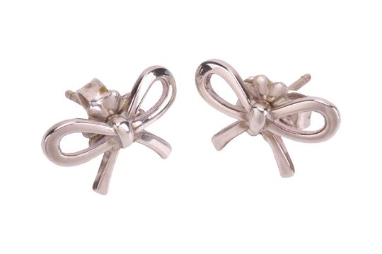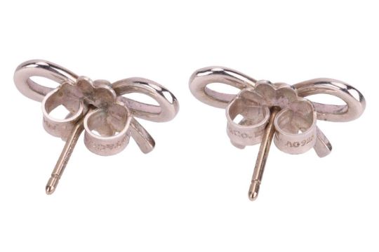 Tiffany - a collection of Tiffany and Co. silver jewellery, to include two "Return to Tiffany" bracelets, a Tiffany bow bracelet, matching bow stud earrings and a padlock bracelet, all signed and accompanied by travel pouches. Total weight 41.9 grams.