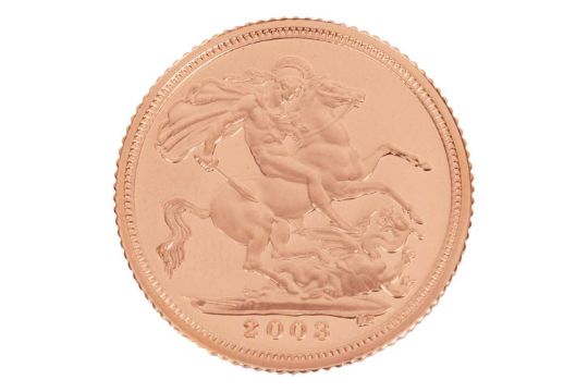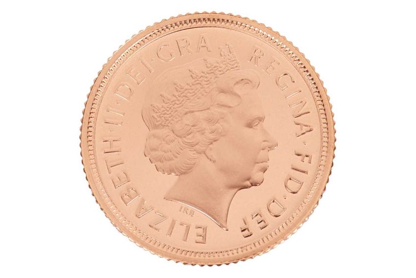 A 2003 Elizabeth II half sovereign, fourth head, in capsule.