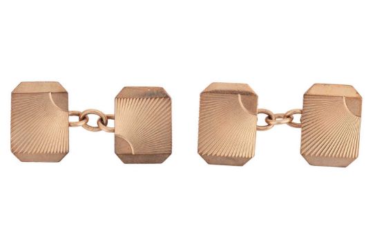 A pair of 9ct gold cufflinks, the head of each cufflink of octagonal form with radiating engraving, 9.17 grams.
