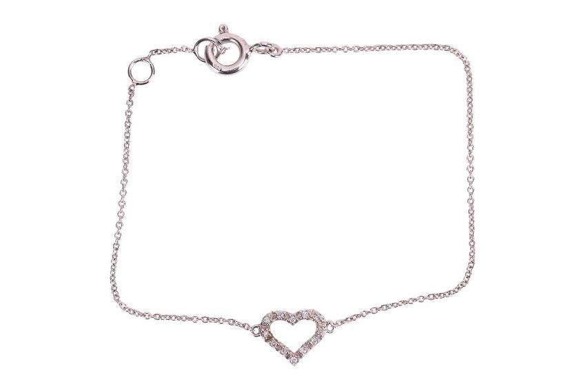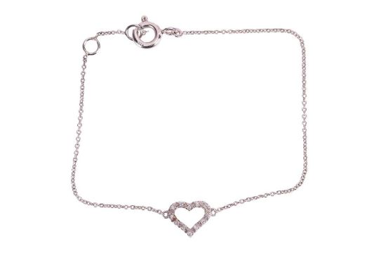 A Gigi by Gassan diamond-set Lucky Love Open Heart bracelet by Gassan, the 14ct white gold heart claw-set with brilliant-cut diamonds, stated weight 0.04ct total, to a cable-link chain, stamped 585, unsigned, length 14.3cm, gross weight 1.00 gram.