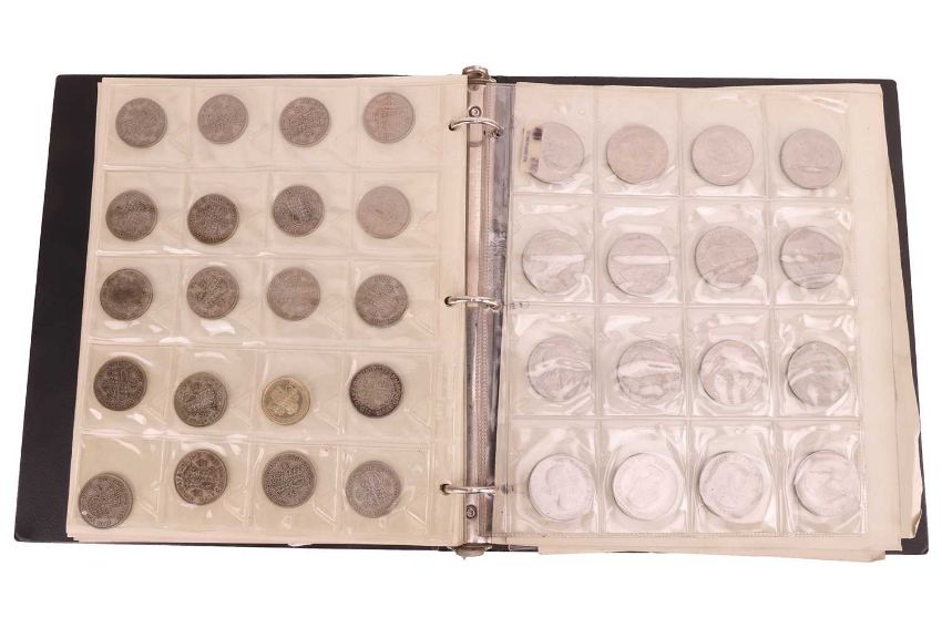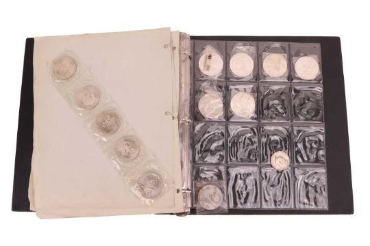 A quantity of commemorative silver coins; to include examples of Shillings, Two Shillings, A Florin, Half Crowns, Churchill Comemorative Crowns and others.