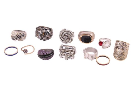 A large collection of silver and costume jewellery, to include pieces by Pandora and Links of London, some accompanied by original packaging; examples of cocktail rings, closed bangles, and others.