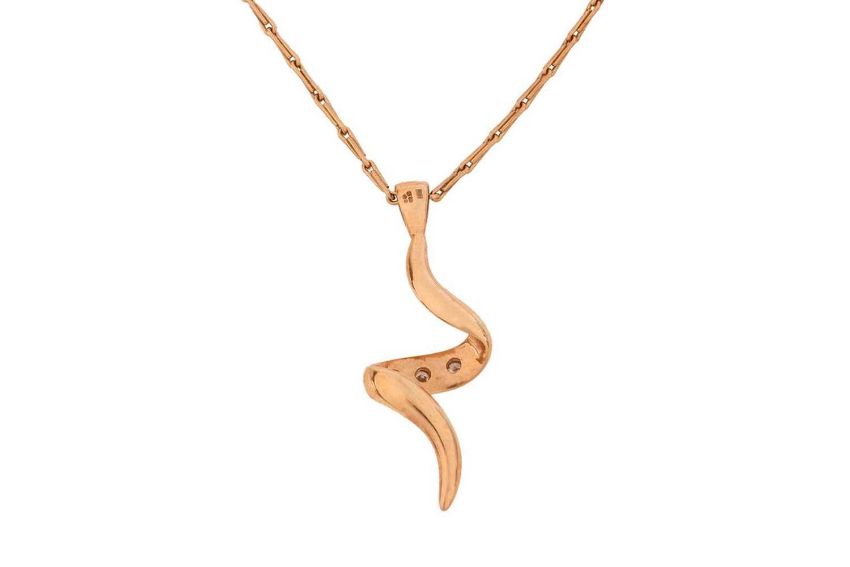 A diamond-set spiral pendant, in 9ct yellow gold, to a 9ct gold paperlink chain, measuring 40.0cm in length, completed with a spring ring clasp (deficient), 4.7 grams.